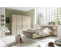 Armoire 2 Portes Coulissantes 2 Portes Battantes Imitation Chene
